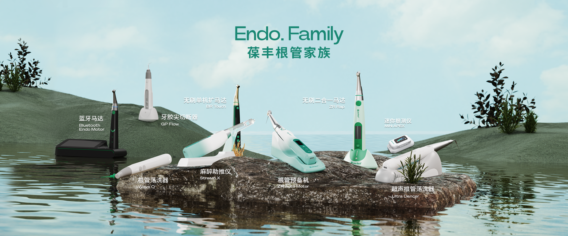電子產(chǎn)品:根管預備機;根管測量儀;根管蕩洗器;熱熔牙膠充填系統(tǒng);無線便攜式麻醉儀;生物陶瓷治療輔助工具。